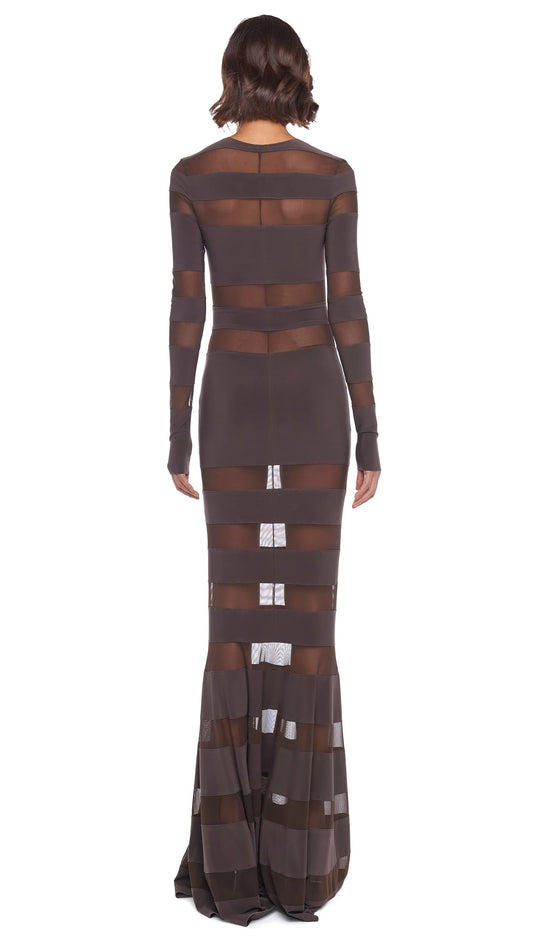 Norma Kamali Mesh Mermaid Gown Chocolate