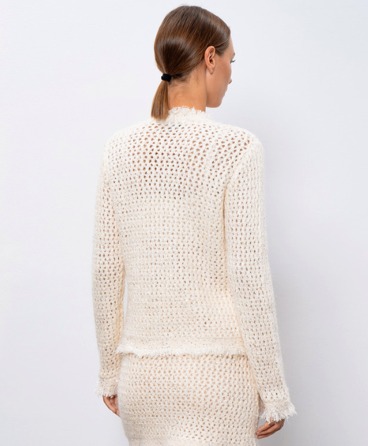 Twinset: Cream Faux Fur Jacket with Leather Trim