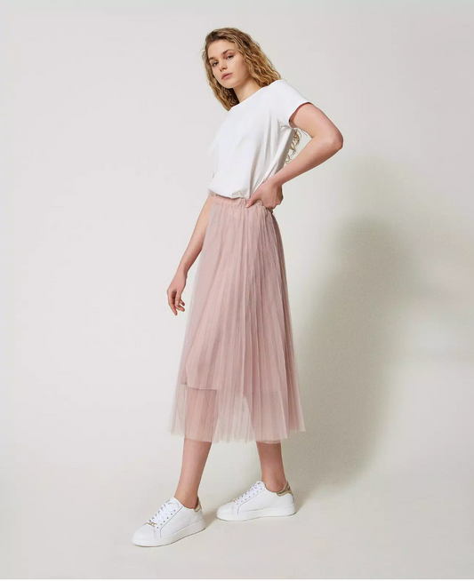 Blush Pink Pleated Tulle Skirt - Twinset