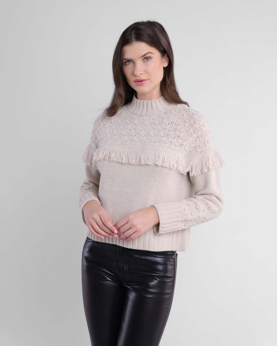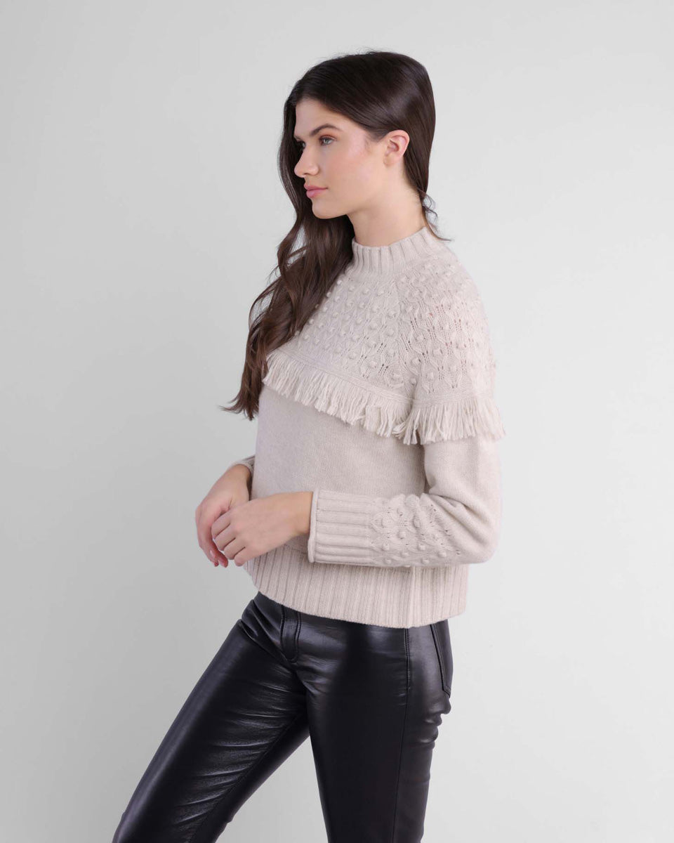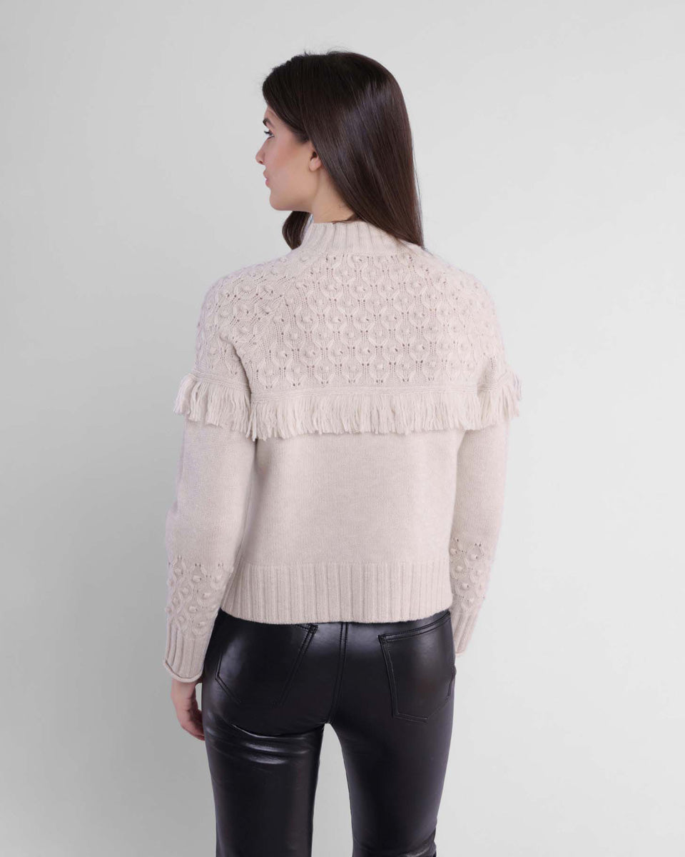 Alashan Rose Bud Fair Isle Fringe Sweater Stone