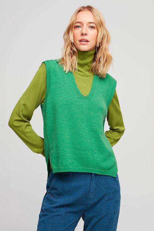 Elevate your style quotient with the AldoMartin Melun Vest in a refreshing green hue. Founded in 1975 by Martí Bisbal, Aldo Martins introduced a new era of women's fashion, focusing on knitwear and a cosmopolitan approach. This turtleneck, a product of local craftsmanship, reflects the brand's dedication to vibrant colors and quality materials. Experience the legacy of contemporary knitwear.