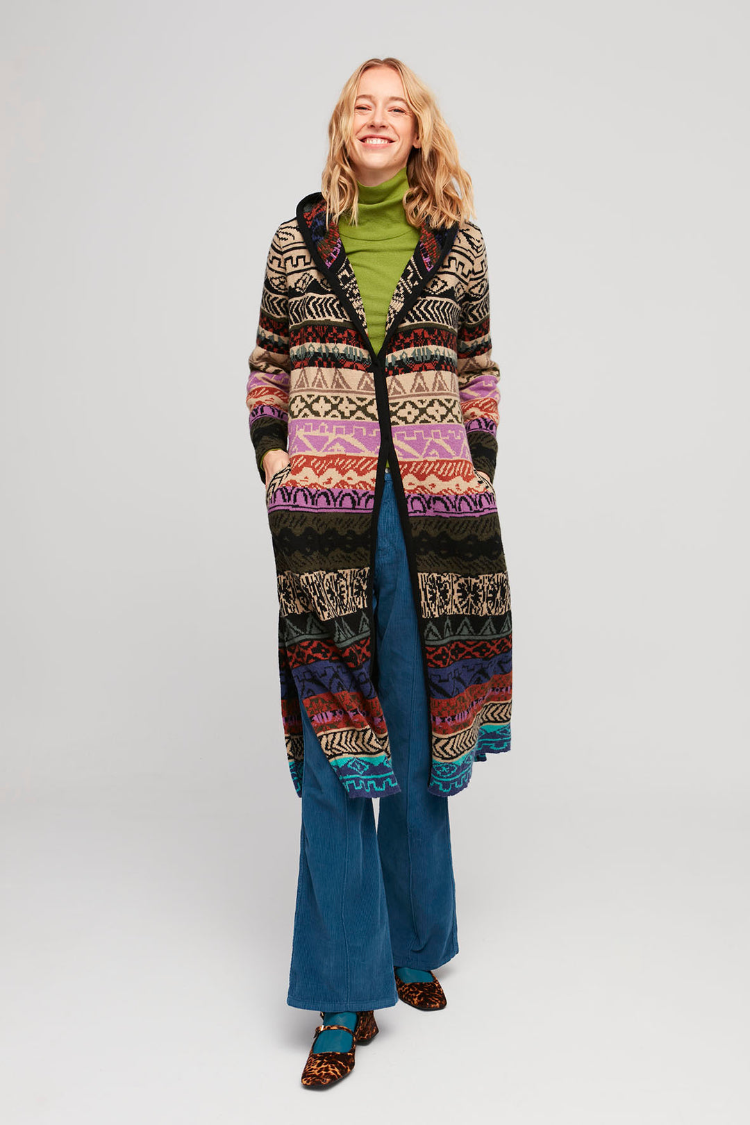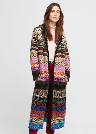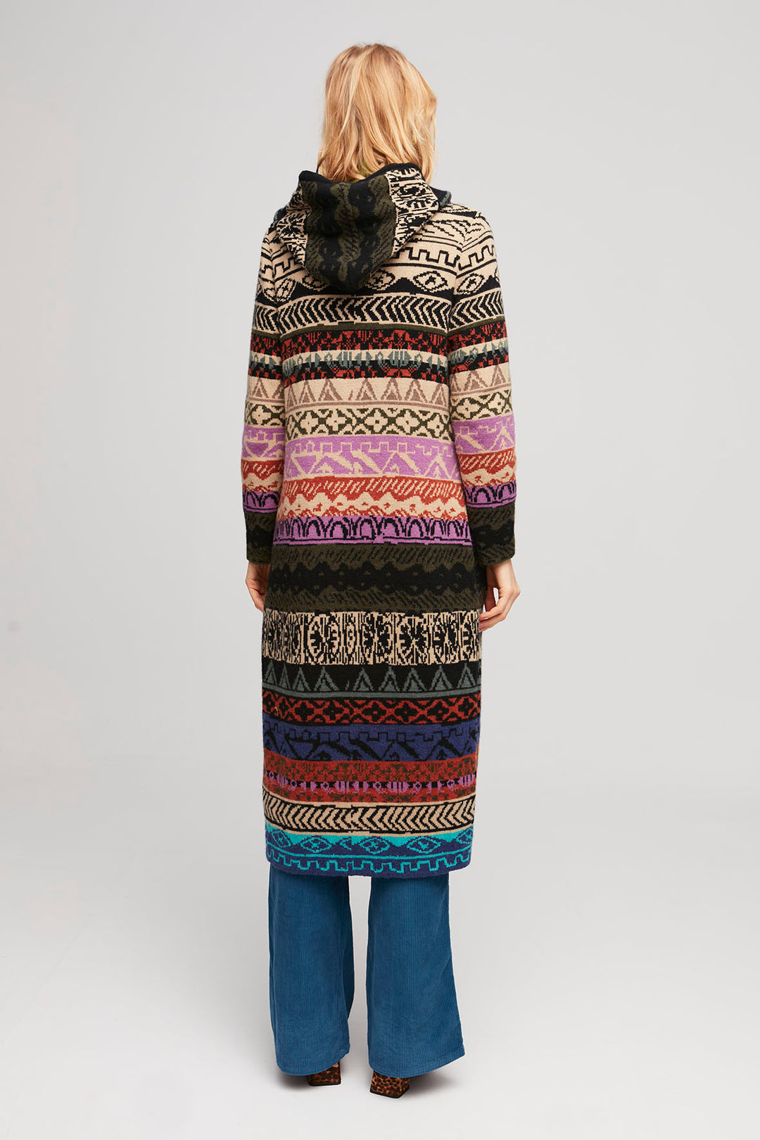 Make a statement with the AldoMartin Narbone Coat, a fusion of style and warmth. Established in 1975 in Sant Martí de Tous, Barcelona, Aldo Martins embodies a unique vision of women's fashion through knitwear. This coat, featuring a striking pattern, showcases the brand's dedication to vibrant colors, quality materials, and handcrafted techniques. Step out in confidence with this emblem of modern knitwear.