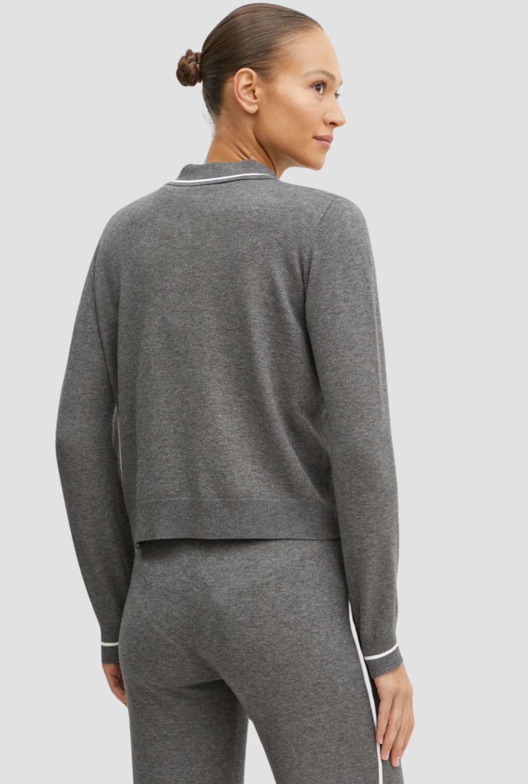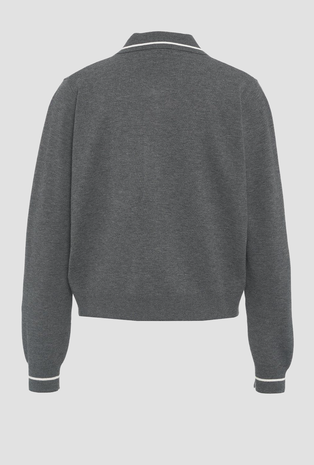 This stylish zip-up sweater combines casual comfort with refined detailing, featuring a classic collar and subtle piping accents. The ribbed cuffs and hem provide a snug fit, while the embroidered logo adds a touch of sophistication. Perfect for layering or wearing on its own, this sweater offers both versatility and a polished look for any casual occasion.
