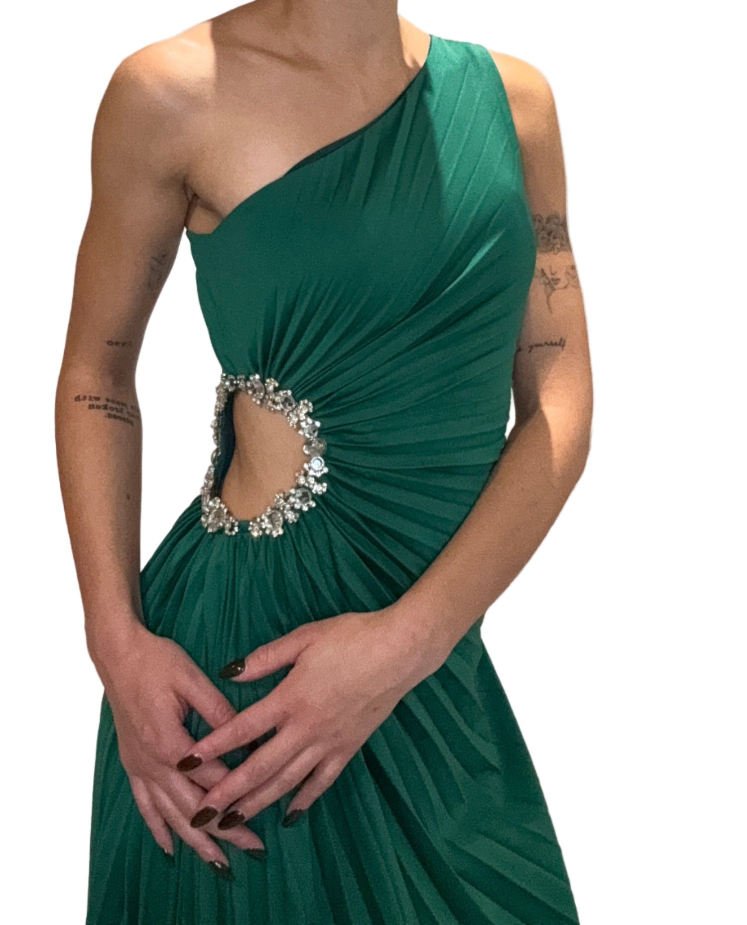 Escoll - Green Pleated Embellished Dress