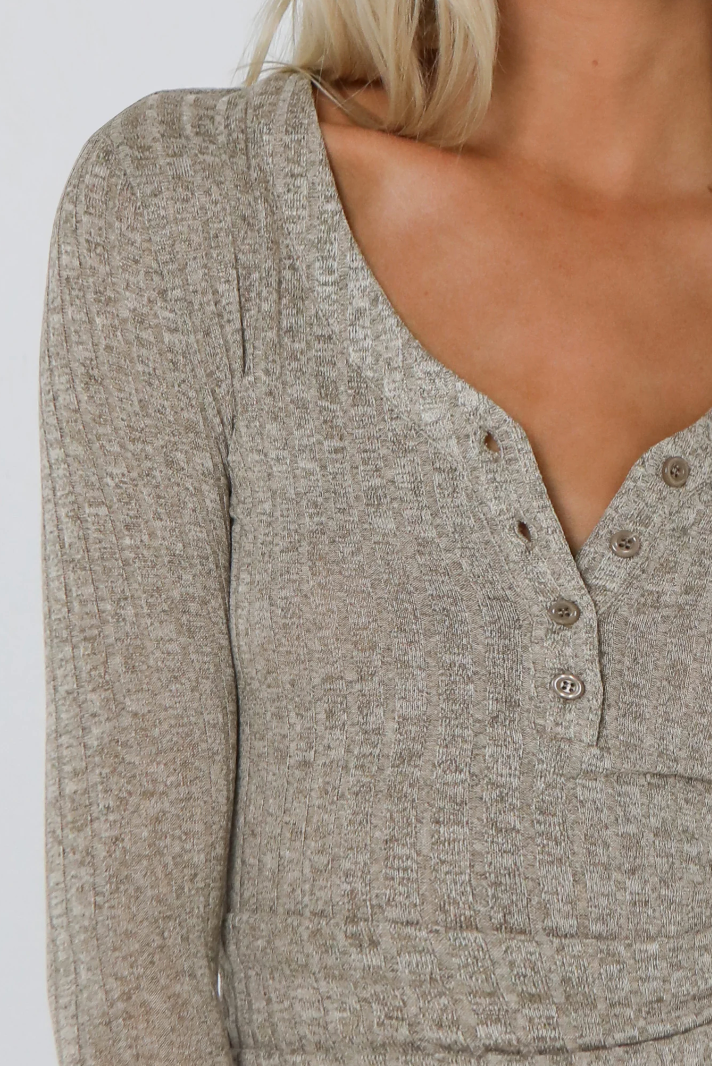 Brown button up V neck long sleeve top
