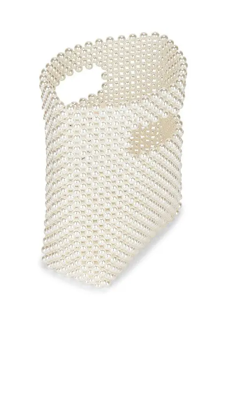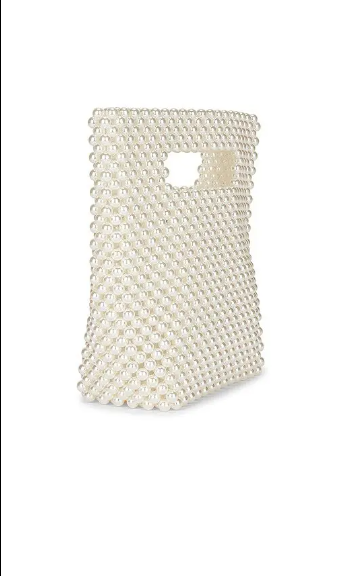 Unlined acrylic pearl exterior. Made in China. Open top. One main compartment. Dimensions: approximately 5.5“ / 14 cm x 7.25” / 18 cm x 2.25" / 6 cm.
