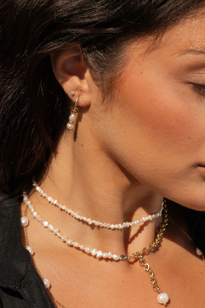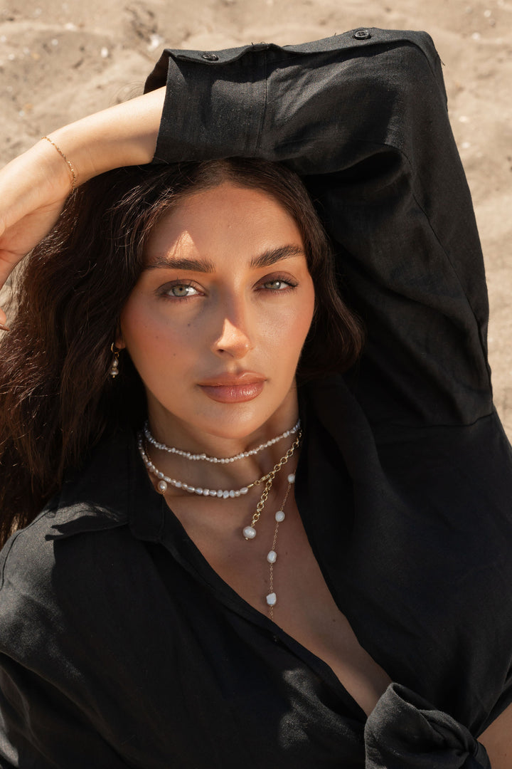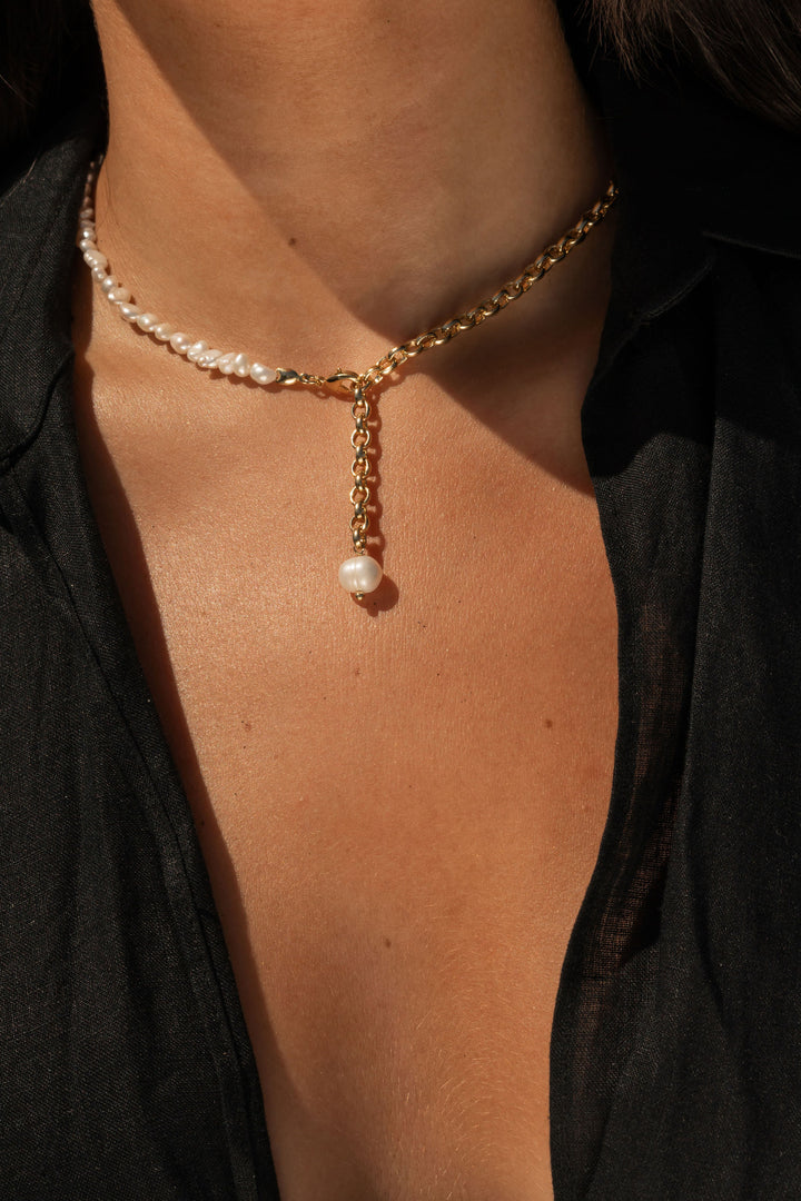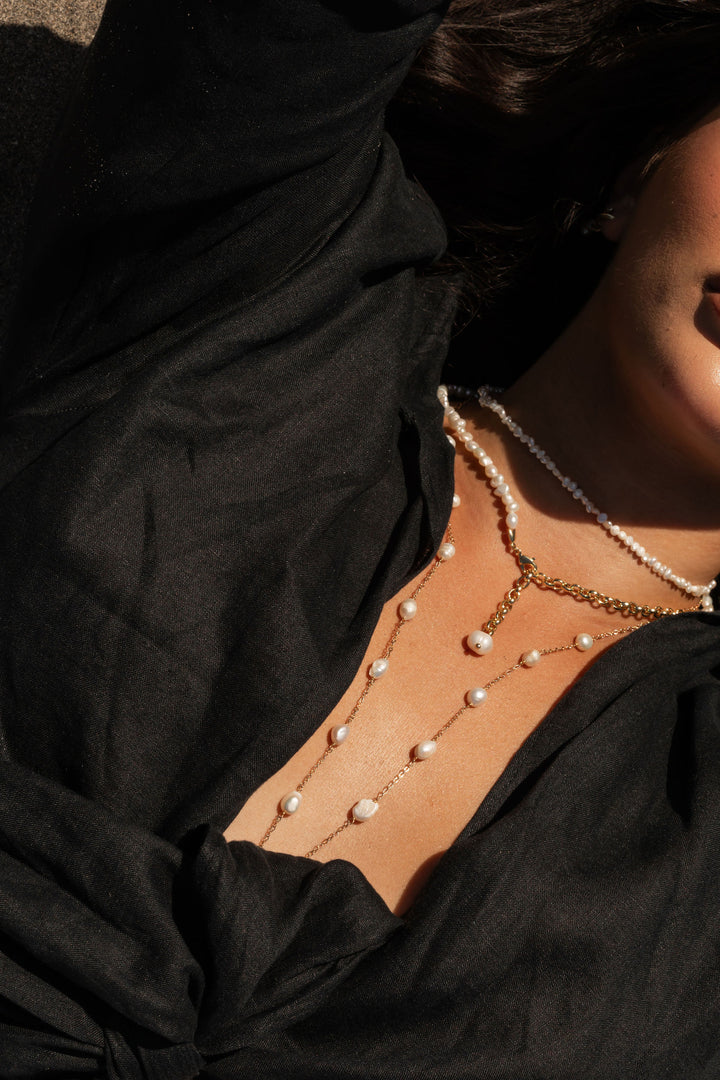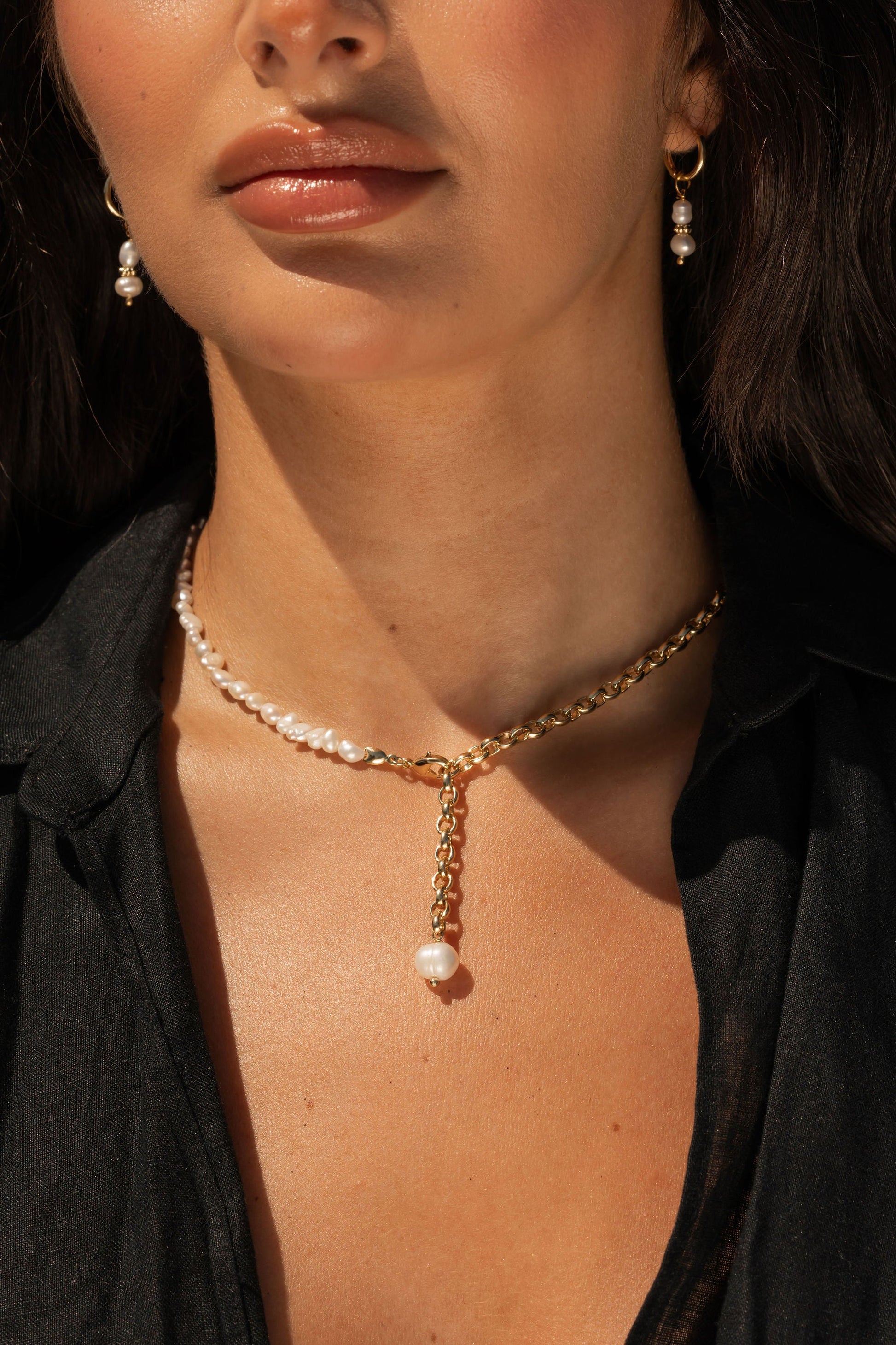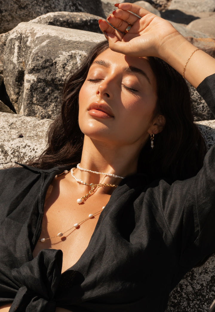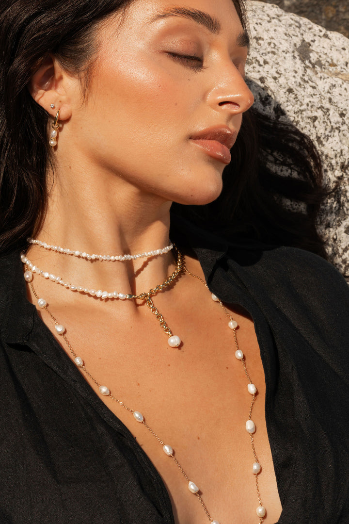 A true classic! This necklace is truly so elegant, timeless and versatile. Pearls represent transformation and wisdom. This strand of pearls with 18k gold plating ties you to the sea and gives a timeless necklace a modern update.