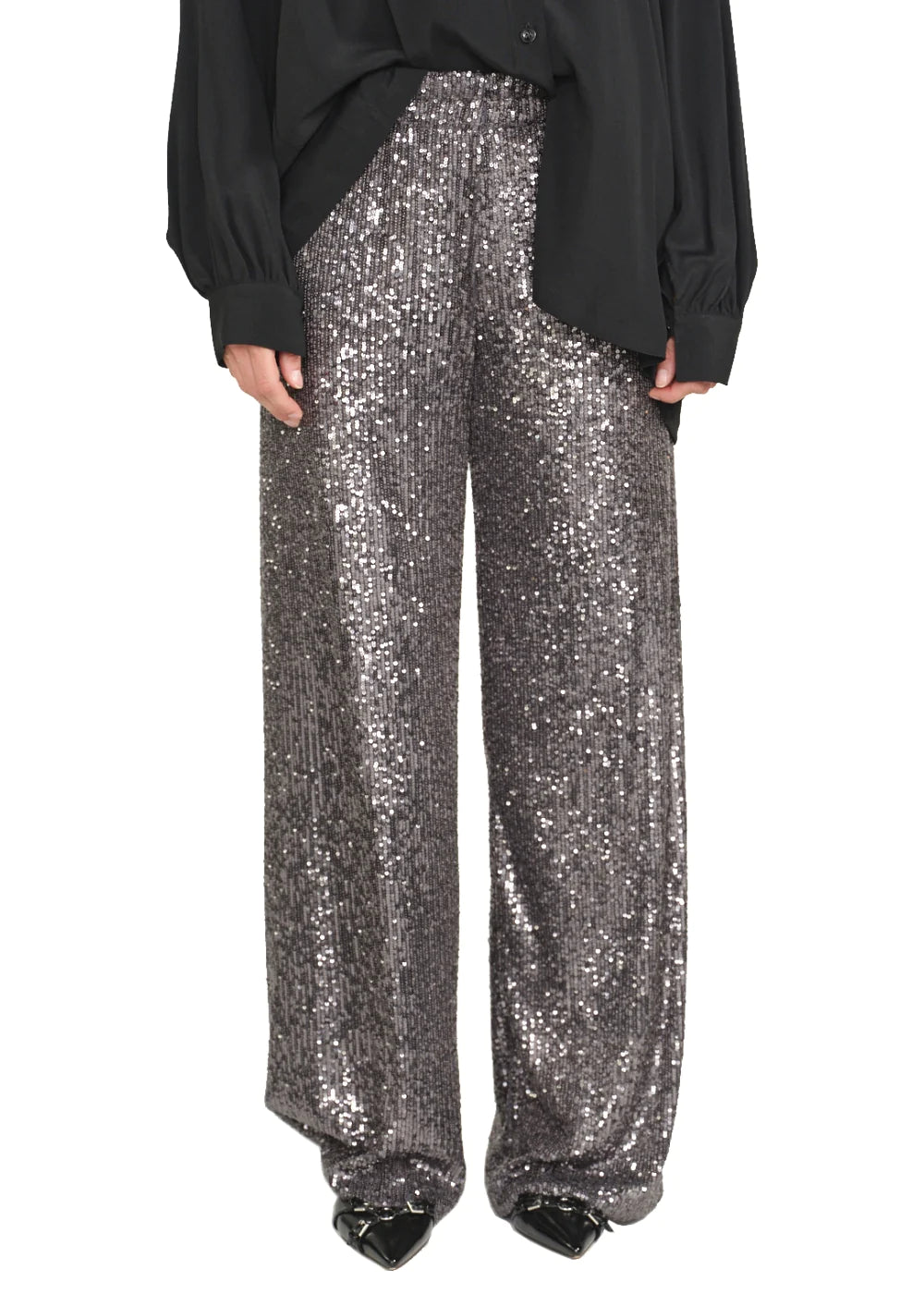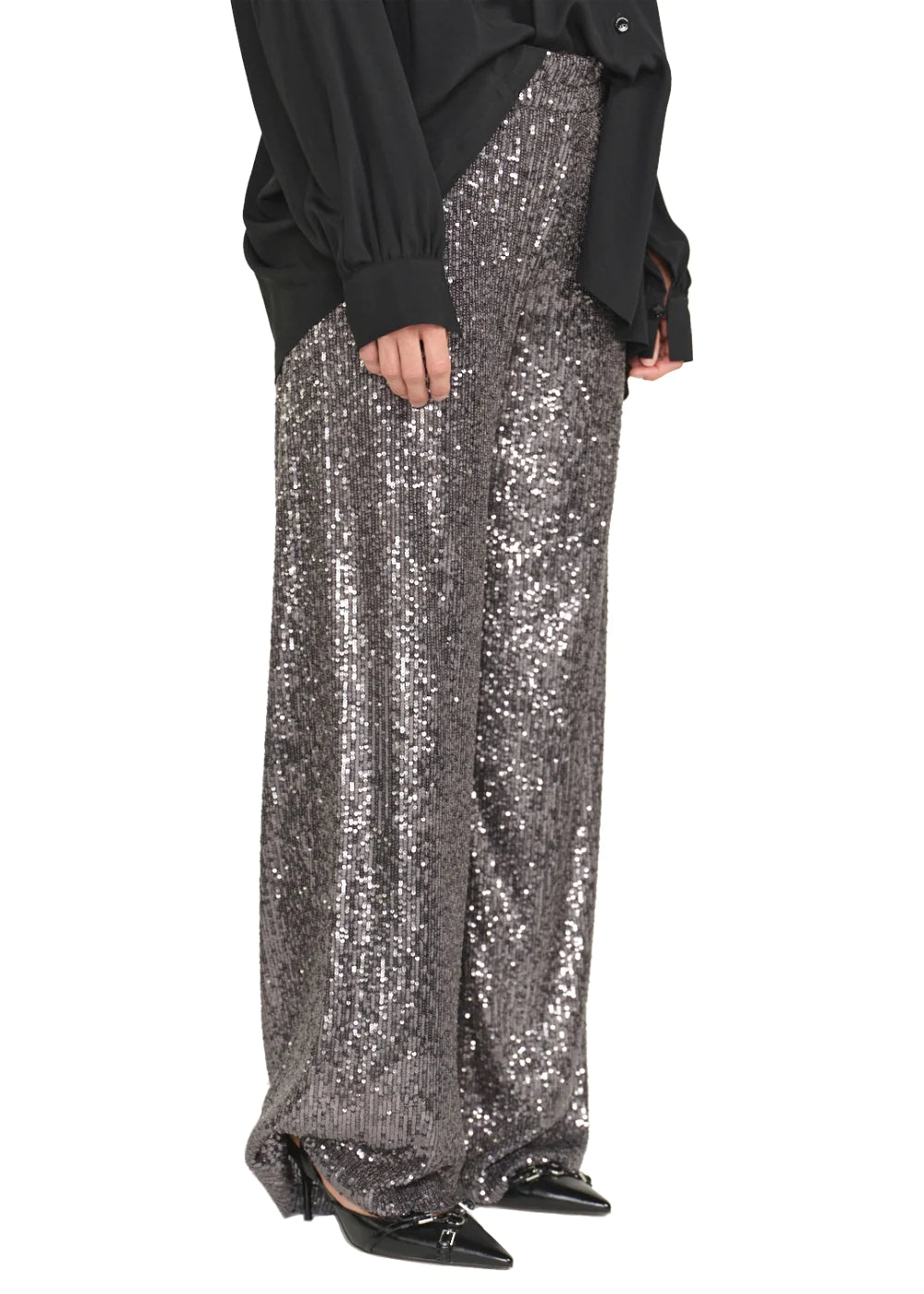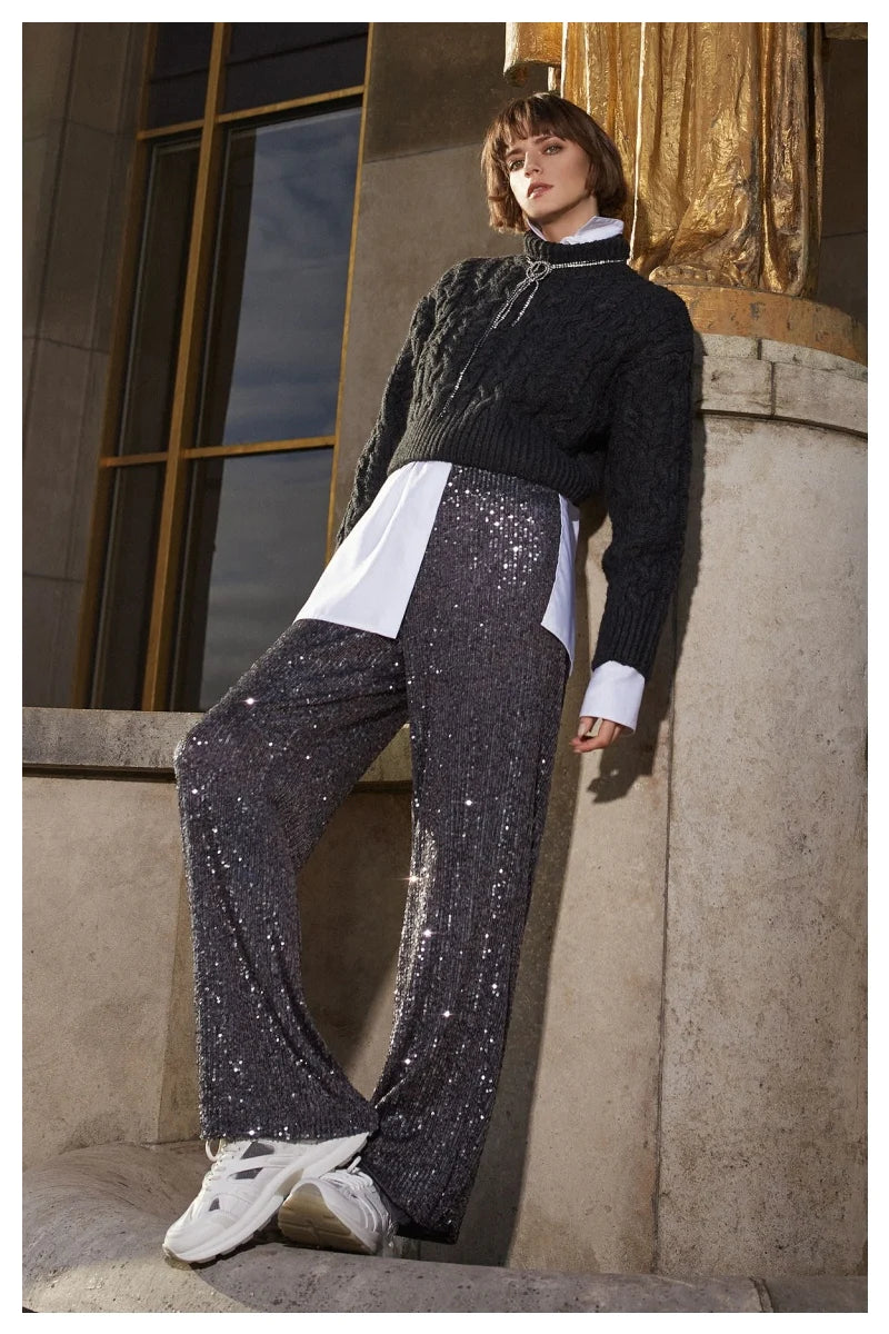 Dive into the world of luxury women's trousers from German brand Seductive with these straight leg sequins trousers, featuring a high waist fit, wide leg, elastic waistband and fully lined.