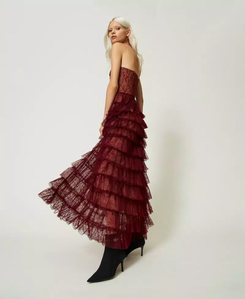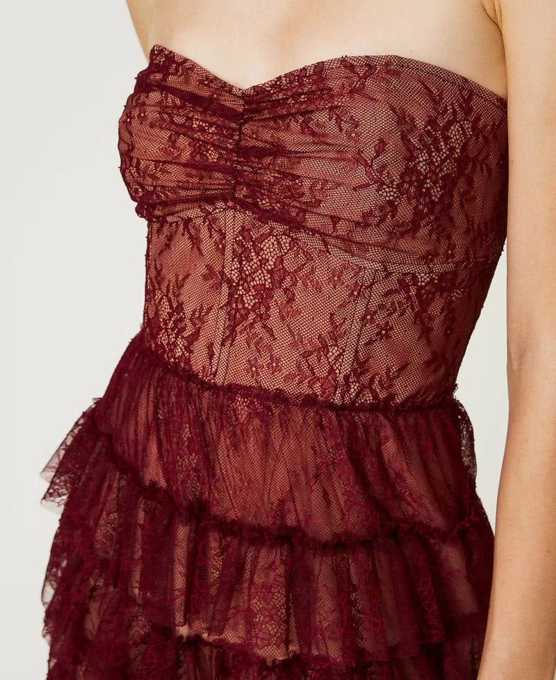 Twinset Chantilly Lace Bustier Dress Cabernet Red