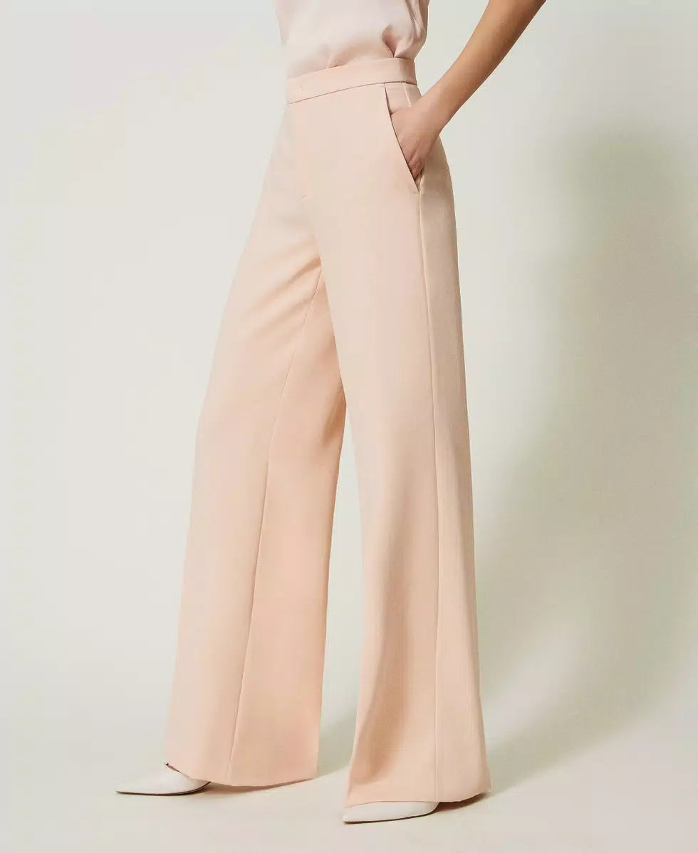 Twinset Pink Wide Leg Crêpe Trousers