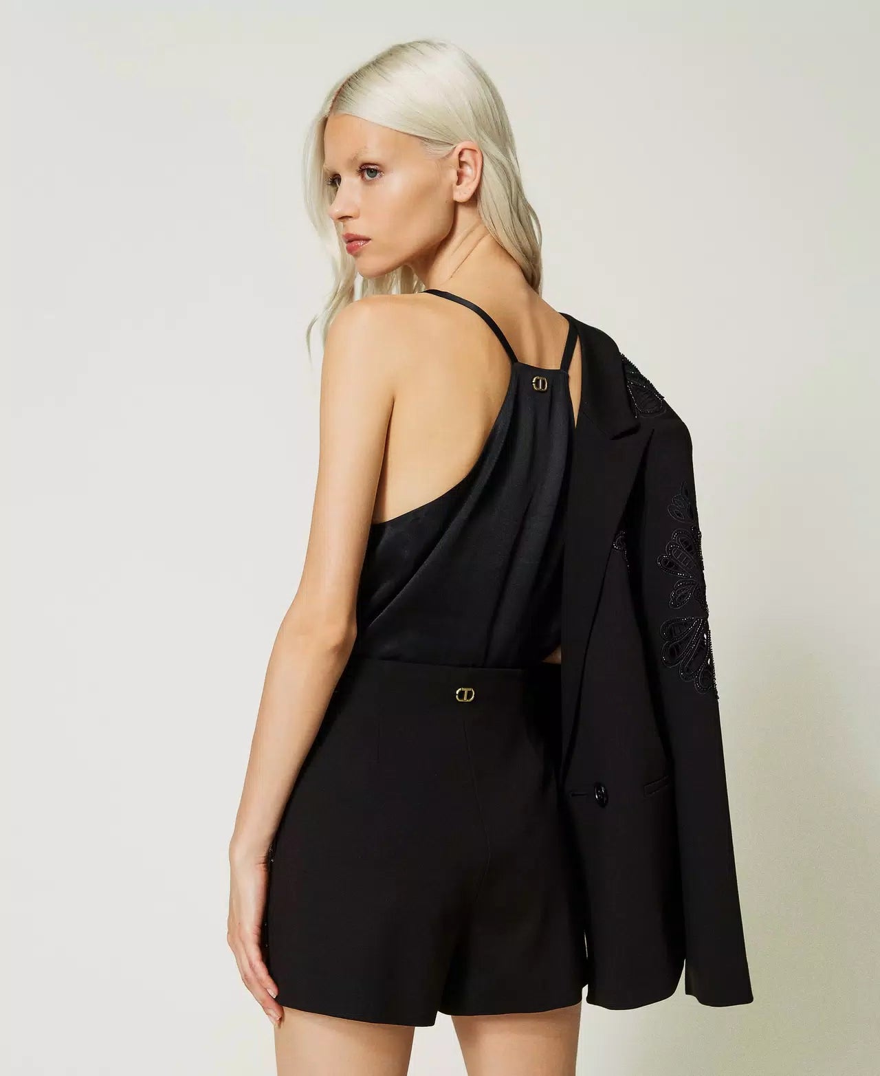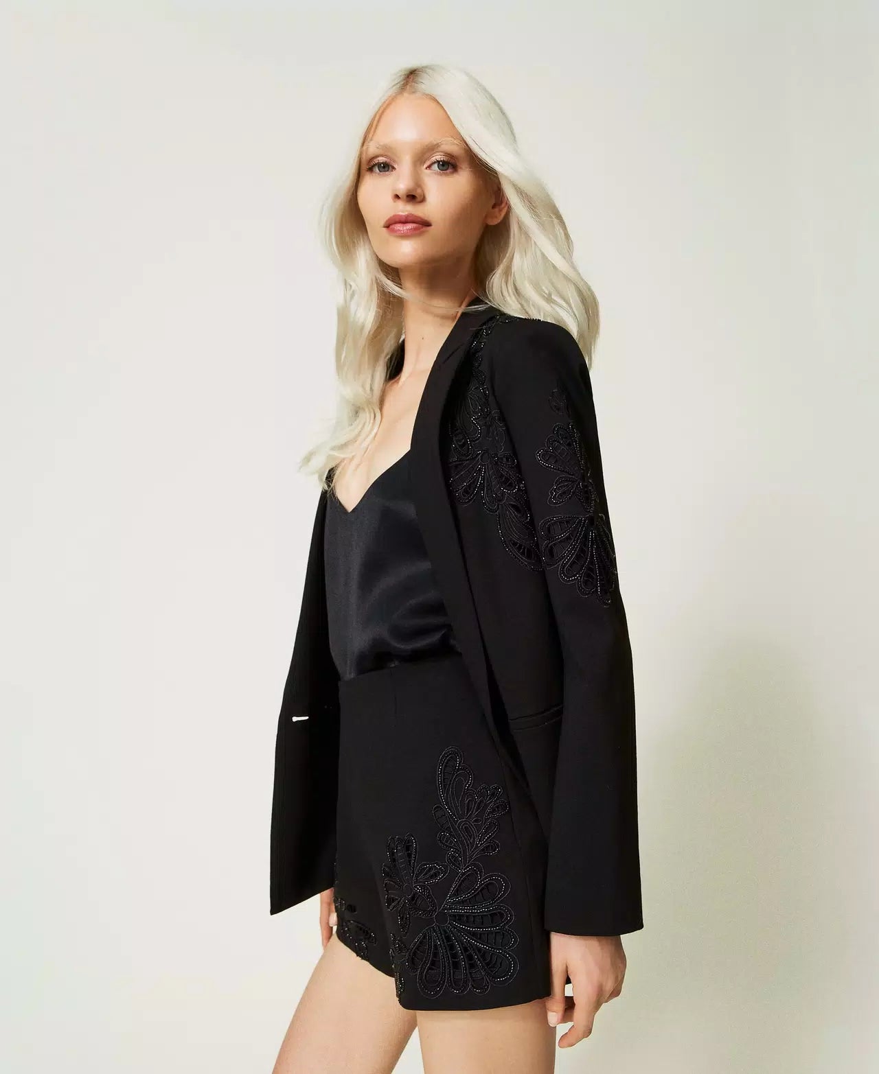 Stylish and sophisticated black shorts featuring gorgeous handmade embroidery by world renowned Italian brand Twinset; in a versatile black colour way with a mid rise fit, these shorts will become a staple in your wardrobe.